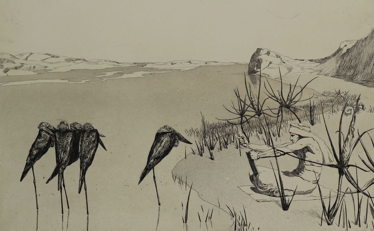 Max Klinger: Narziss und Echo, aus dem Zyklus Opus II – Rettungen Ovidischer Opfer, 2. Ausgabe 1880, Radierung und Aquatinta auf Chine collé, Graphische Sammlung, Wallraf-Richartz-Museum & Fondation Corboud, Dauerleihgabe der Bundesrepublik Deutschland seit 2012