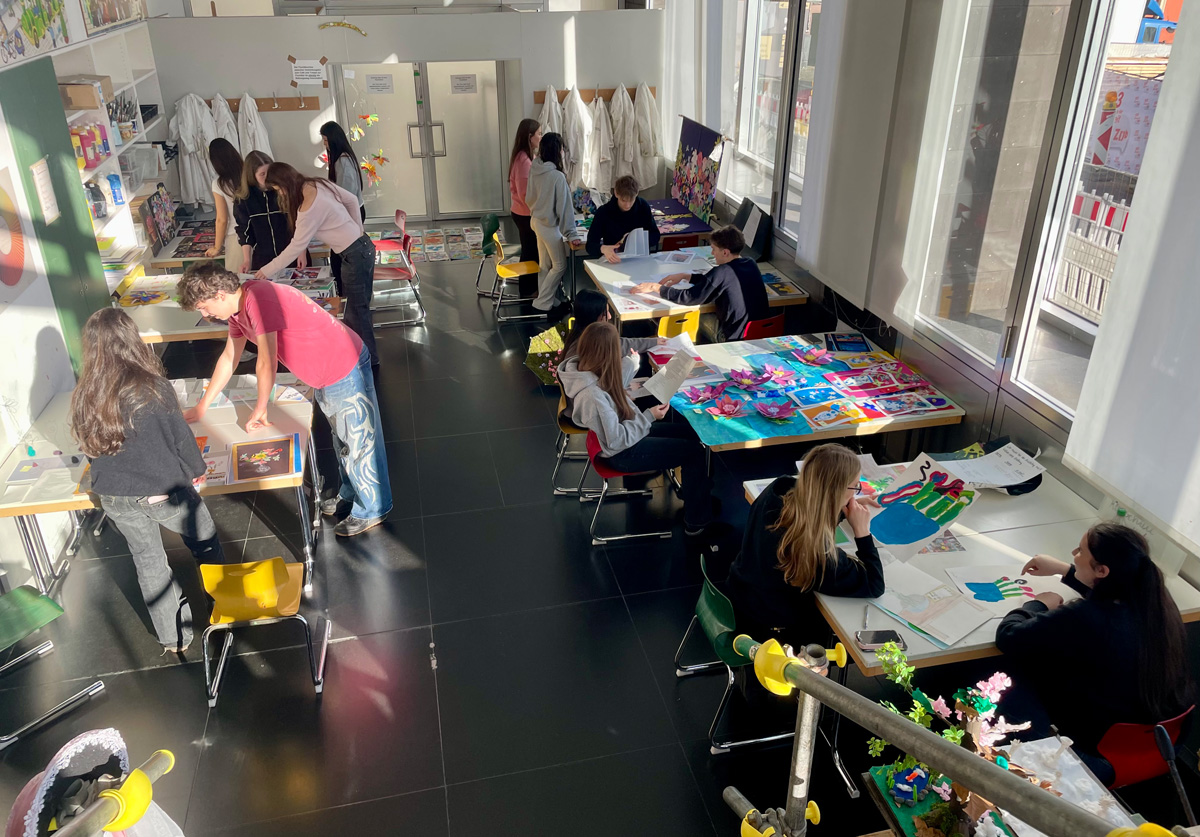 Viele der eingesandten Beiträge wurden von erklärenden Texten begleitet, die faszinierende Einblicke in die Gedankenwelt der jungen Künstlerinnen und Künstler geben. Ökologie und Konsumkritik werden thematisiert. Aber auch religiöse und philosophische Ideen bewegen die jungen Kunstschaffenden: Sie verbinden die Endlichkeit des Lebens, Tod und Jenseits mit der Schnelllebigkeit unserer Zeit. Auch die Auswahl der Werke lag in junger Hand. Schülerinnen und Schüler entwickelten eigene Kriterien und jurierten die Beiträge in einem demokratischen Prozess, der jede Arbeit ernst nahm. Ein Kuratoren-Tandem aus der Schülerschaft konzipierte schließlich „B(L)OOMING NOW“. Dabei wählten sie Zitate und Songs aus und verfassten Texte, die das Publikum dazu einladen, Blumen und ihre Bedeutung im Spiegel unserer Gegenwart zu betrachten. Außerdem werden die Besuchenden eingeladen, sich in der Ausstellung auch selbst einzubringen.