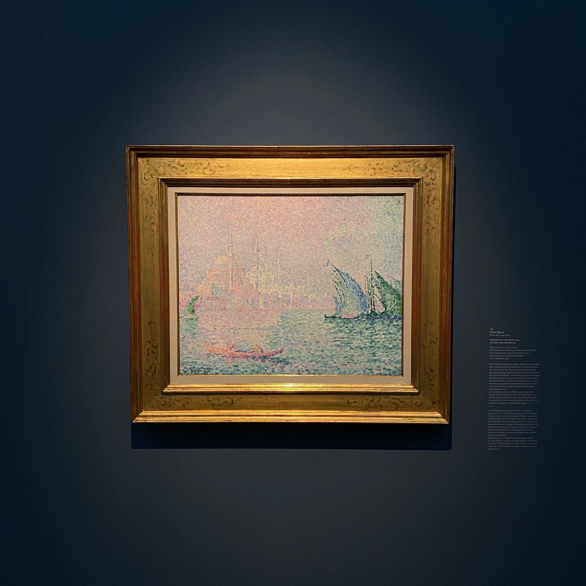 Summer at the port of Istanbul. Under full sail, ships move off to the left and right, out of the viewer’s field of vision. As if opening a curtain, they reveal a view of Istanbul’s unique skyline of domes, towers and minarets. Paul Signac captured this scene on canvas in 1909 with thousands of dabs of his brush and his distinctive feeling for colour. At that time the city was still called Constantinople and was the most important metropolis in the Ottoman Empire. The Pointillist work is now the centrepiece of the special exhibition ‘Bon Voyage, Signac!’ in Cologne, which includes about sixty works by renowned artists such as Monet, Manet, Caillebotte, Courbet, Gauguin, Cézanne van Gogh and Matisse. The Wallraf is introducing a new Signac with this Impressionist journey through its own collection. The generous loan of Signac’s Constantinople: Yeni Djami from the Stiftung Kunst im Landesbesitz (NRW) enables the Wallraf to also exhibit a major work from the artist’s later period. The Wallraf’s department of art technology and restoration has thoroughly examined the painting especially for the exhibition and carefully cleaned the top layer of paint. The process of this restoration has been comprehensively documented and the result is breathtaking. This ‘new’ Signac is now presented for the first time to the public.