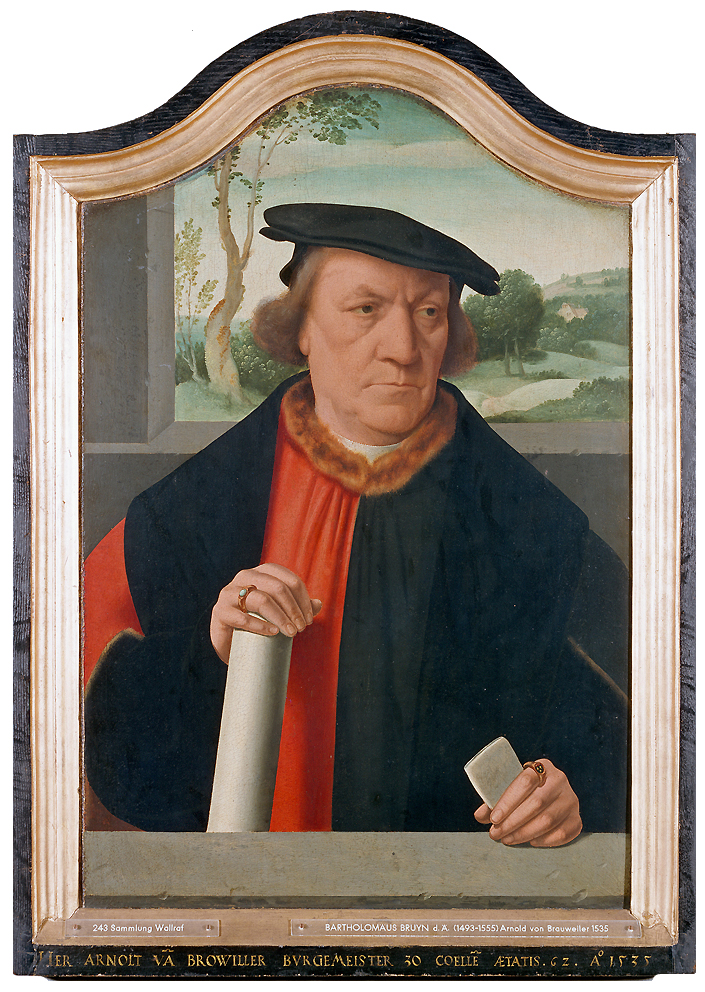 - Bartholomäus Bruyn, the Elder (Wesel 1493 – 1555 Cologne): Portrait of the Mayor of Cologne Arnold von Brauweiler, 1535. Oak, 57 x 38.5 cm. Collection of Ferdinand Franz Wallraf. WRM 0243. Photo: Rheinisches Bildarchiv Köln