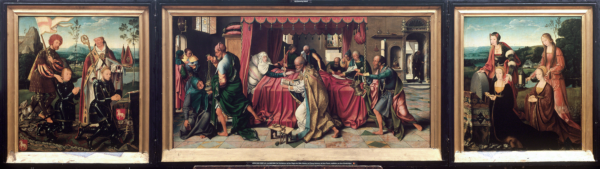 - Joos van Cleve, the Elder (Joos van der Beke, active in Antwerp 1511 - 1540): Triptych with the Death of Mary, 1515. Oak, 65 x 125,5 cm (cental panel), 67 x 59 cm (wings). Collection of Ferdinand Franz Wallraf. WRM 0430. Photo: Rheinisches Bildarchiv Köln