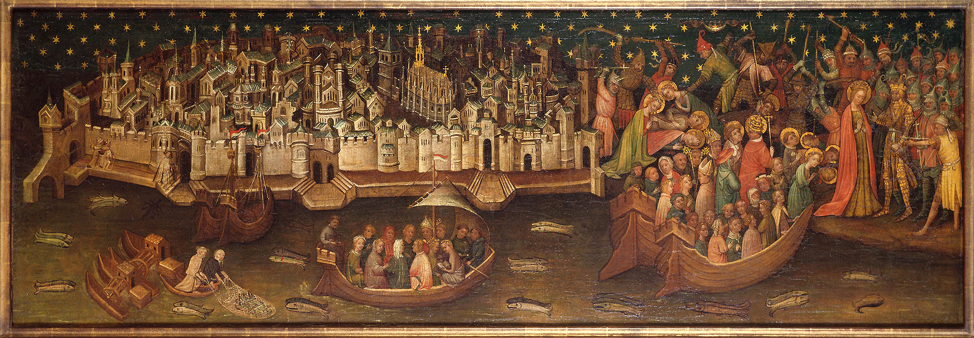 - Master of the Little Passion (active in Cologne c. 1400 – 1420): Martyrdom of St Ursula at Cologne, c. 1411. Canvas, 60 x 179 cm. Collection of Ferdinand Franz Wallraf. WRM 0051. Photo: Rheinisches Bildarchiv Köln