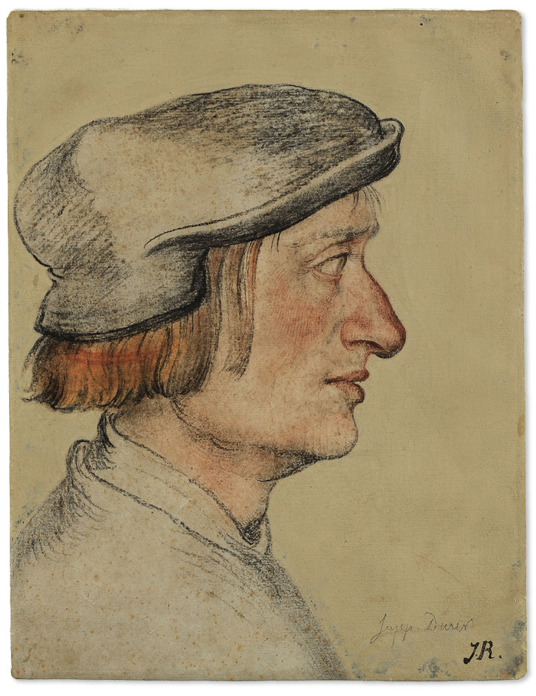• Augsburg Master, c. 1520–30: Portrait of a Man, charcoal, coloured chalk on primed vergé paper, 6.3 x 20.2 cm. Old holdings, WRM Z 132