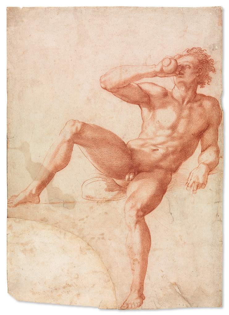 • Baccio Bandinelli (Florence 1493–1560 Florence): Study of a Young Boy wiuth Drinking Vessel, c. 1530–40, red chalk on vergé paper, 40.2 x 28.6 cm. Old holdings, WRM Z 3450