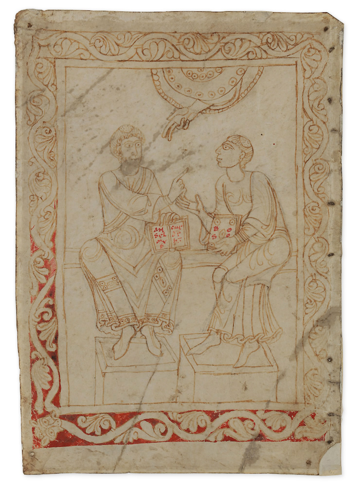 • England, c. 1100: Disputatio of St Anselm of Canterbury, pen and brown ink and opaque paint, on parchment. 18,2 x 12,4 cm. Old holdings, WRM H 147