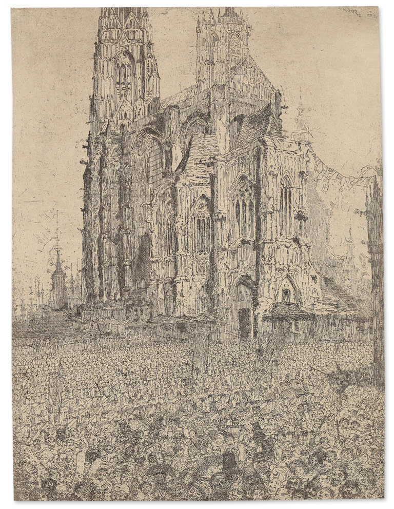 • James Ensor (Ostend 1860–1949 Ostend): The Cathedral,  etching on Japan paper, 39.9 cm x 28.4 cm. Acquired in 1913, WRM 1913/173
