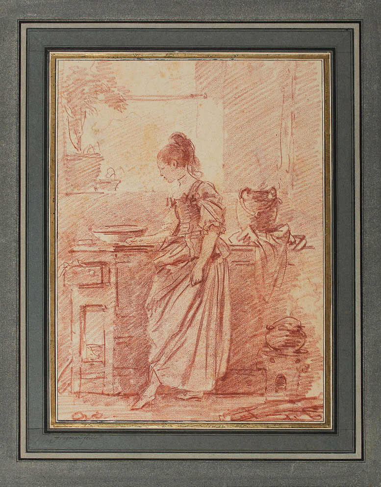 • Jean-Honoré Fragonard (Grasse 1732–1806 Paris): The Pretty Cook,  red chalk on vergé paper, 33.5 x 24.6 cm. Acquired in 1944, WRM 1944/6