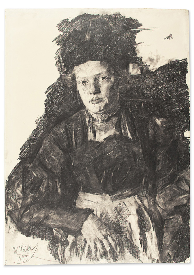 • Wilhelm Leibl (Cologne 1844–1900 Würzburg): The Girl with the Velvet Cap (‘Die Wabn’),  charcoal on vergé paper, 61.2 x 44.7 cm. Acquired in 1911, WRM 1925/271