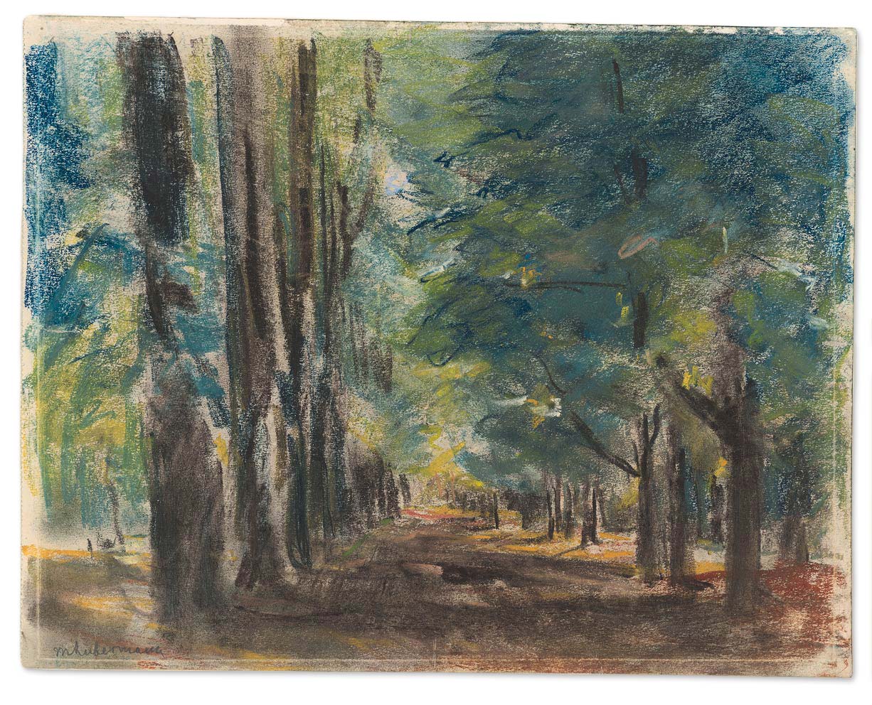 • Max Liebermann (Berlin 1847–1935 Berlin): Avenue in Sakrow,  Pastel on vergé paper, 23.4 x 30.0 cm. Acquired in 1929, WRM 1929/19