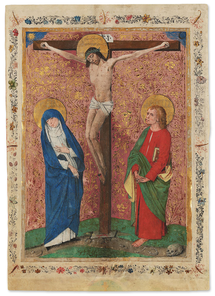 Meister of the Lyversberg Passion (active in Cologne c. 1460 – c. 1490): Christ on the Cross between the Virgin and St John, c. 1460, opaque paints anf gold, on parchment, 28.9 x 20.1 cm. Acquired in 1933 as a gift from Kunsthandlung Malmedé, WRM M 79a