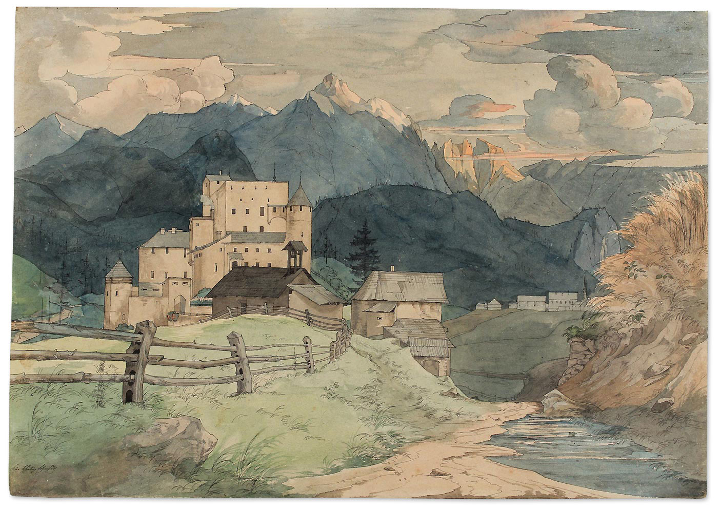 Ernst Ferdinand Oehme (Dresden 1797–1855 Dresden): Naudersberg Castle in Tyrol, watercolour over pencil and ink on vergé paper, 23.6 x 33.5 cm. Acquired in 1933, WRM 1933/35?