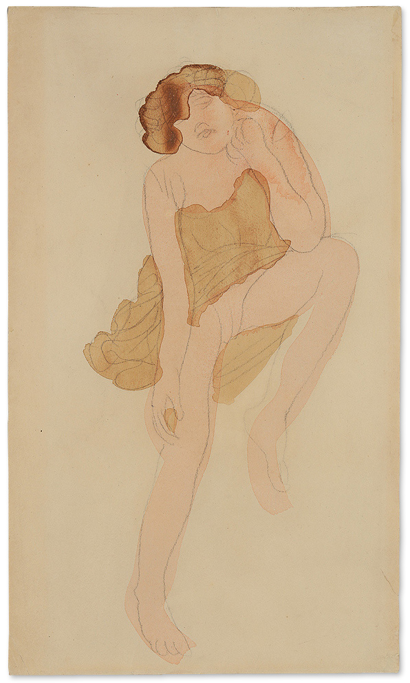 • Auguste Rodin (Paris 1840–1917 Meudon): Dancing Girl,  pencil with watercolour, on vergé paper, 32.8 x 19.1 cm. Acquired in 1958, WRM 1958/61.